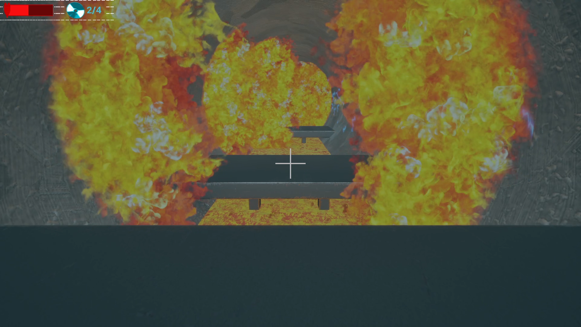 Navigate a burning chamber floating to each platform to collect forgotten CDs. Avoiding electrified walls and surrounding lava, or risk getting burned onto a CD forever.